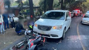Morelia, Mich.- Jueves 05 de febrero de 2026.- Un motociclista resultó lesionado tras un choque en el que también participó otra vehículo, sobre la avenida Cointzio, a la altura del Balneario Ejidal, en el municipio de Morelia, informaron fuentes policiales y de rescate.