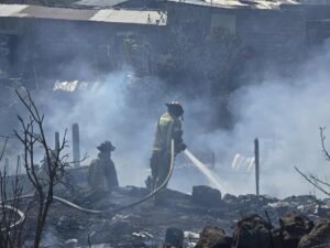 Morelia, Mich.- Viernes 13 de febrero de 2026.- Al menos tres casas de madera y láminas de cartón fueron devastadas por un incendio durante la tarde de este viernes en la colonia Ampliación 2 de Diciembre, aledaña a la colonia Ciudad Jardín, en la zona poniente de Morelia; en el hecho también murió un canino calcinado, informaron autoridades policiales y de rescate.
