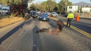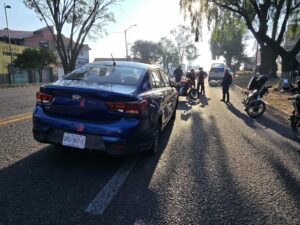 Morelia, Mich.- Viernes 13 de febrero de 2026.- Un joven motociclista resultó gravemente lesionado luego de chocar contra la parte lateral derecha trasera de un automóvil sobre la avenida Madero Poniente, en Morelia, informaron fuentes policiales.