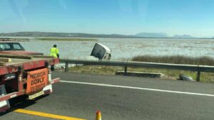 Cuitzeo, Mich.- Miércoles 18 de febrero de 2026.- Un automovilista de la tercera edad falleció en un aparatoso choque en el que estuvo involucrado un tractocamión. Además, en el incidente también resultó afectado un tráiler nodriza; el hecho ocurrió sobre la autopista Morelia-Salamanca, a la altura del Lago de Cuitzeo, informaron autoridades policiales y de rescate.