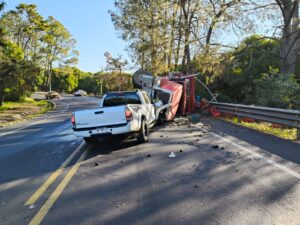 El aparatoso accidente se registró este jueves, a la altura del Rancho EL Rincón, en la población de Nuevo Zirosto, donde primeramente un Torton conducido por Francisco Javier O., de 26 años, se salió de control y terminó por volcar en una curva, sitio por donde transitaba una Toyota Tacoma de color blanco, cuyo conductor Héctor N., de 55 años de edad no logró evadir al automotor siniestrado impactándolo de frente.