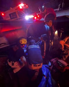 Uruapan, Mich.- 11 de marzo de 2026.- La noche del martes pasado se registró la volcadura de un vehículo compacto sobre la carretera Uruapan-Paracho, con saldo de una mujer embarazada lesionada y cuantiosos daños materiales.