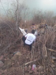 A su llegada los socorristas descendieron por terreno agreste y al fondo del desnivel hallaron una camioneta de color verde totalmente destrozada, aún en su interior localizaron a varios lesionados, por lo que con apoyo de equipo hidráulico realizaron las maniobras para su liberación.
