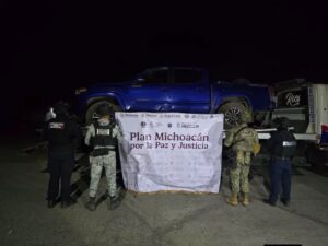 Apatzingán, Mich.- 20 de abril de 2026.- Tras una serie de enfrentamientos entre civiles armados y elementos de la Base de Operaciones Interinstitucionales (BOI), autoridades aseguraron tres vehículos, armamento de alto poder y municiones en la comunidad de Acahuato, perteneciente al municipio de Apatzingán.