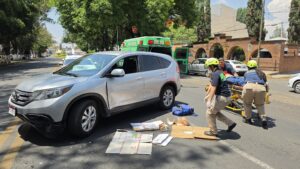 Oficiales de Tránsito Municipal realizaron los peritajes y aseguraron la moto de la marca Italika WS175, de color negro, con azul, con placa L2F17V, así como la camioneta involucrada, una Honda CR-V, de color plata, con matrícula PLL-453-B.